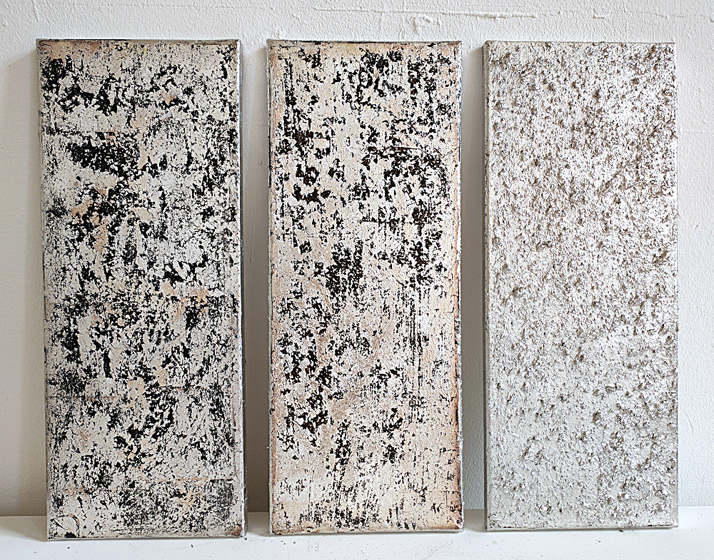 Mineral earth – Siber, platinum on canvas | each 70 x 20 x 4 cm | created in Berlin