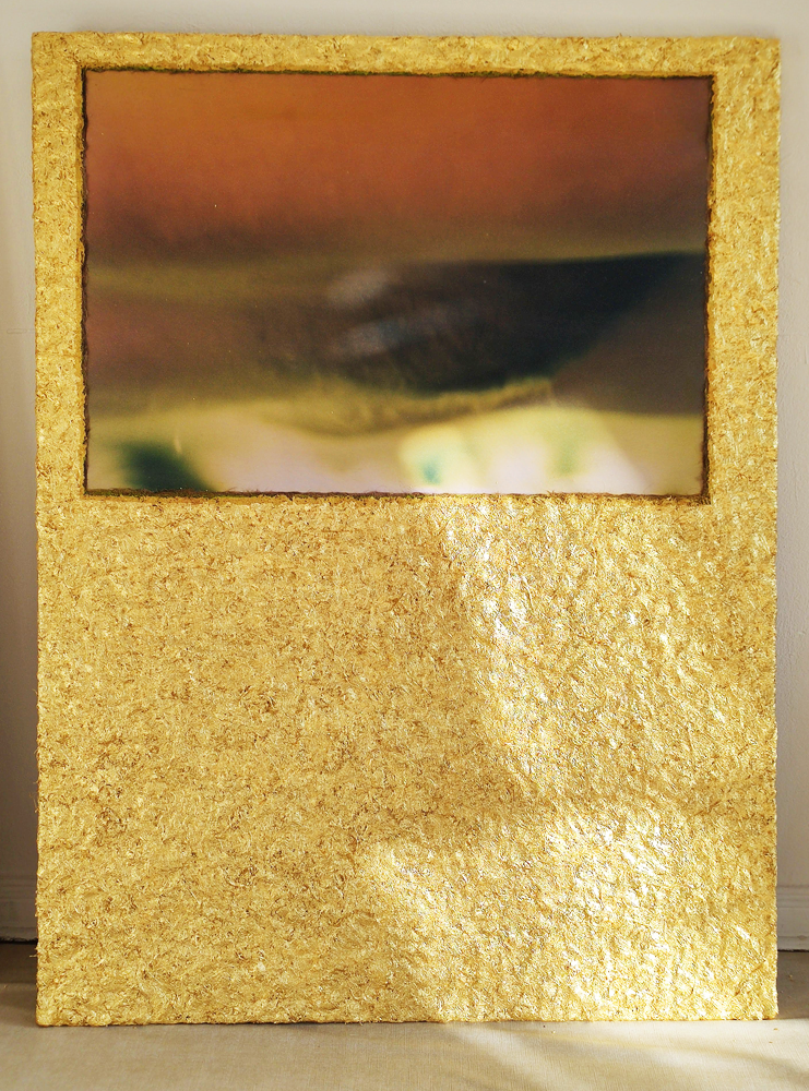 embodied | 120 x 90 cm | hair, oil , photographie - gold-plated - on wood |