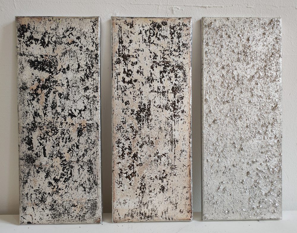 time | each 70 x 20 cm | mineralsoil, silver and platin on canvas |