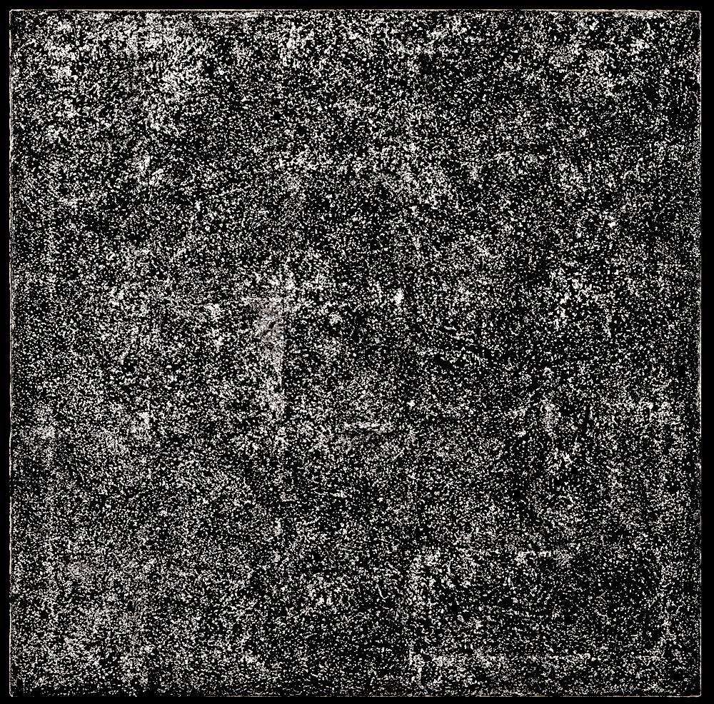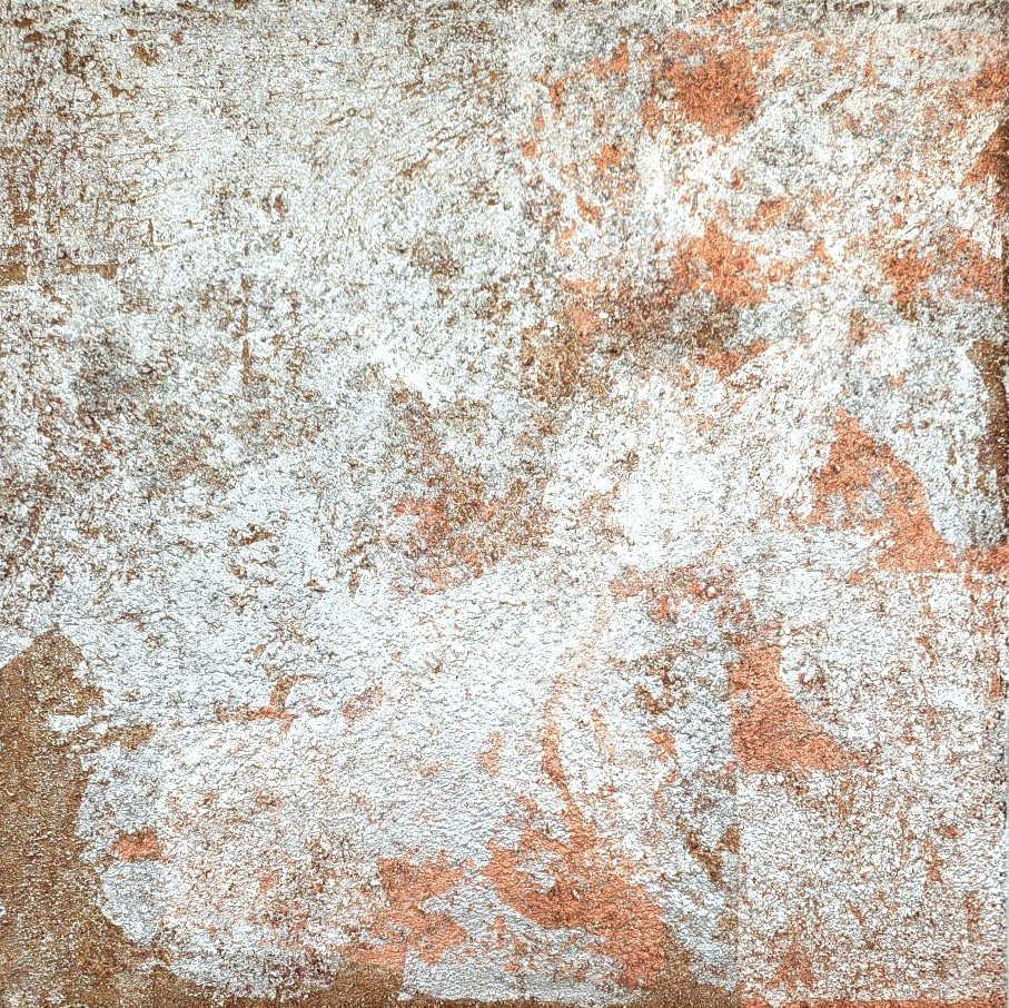 ohne Titel | 60 x 60 x 4 cm | Aluminium, platinum, silver, gold, copper, earth on canvas |
